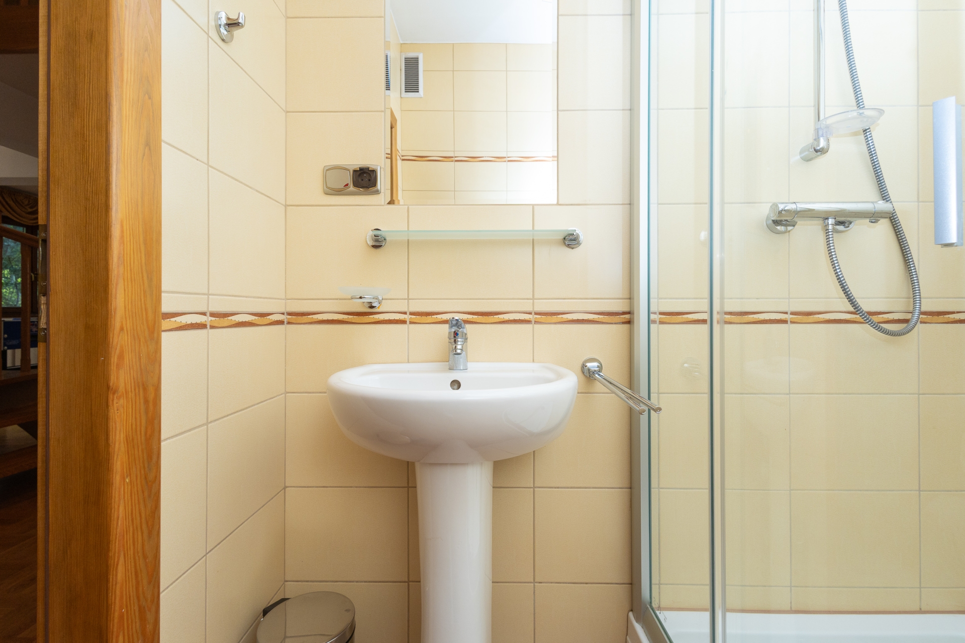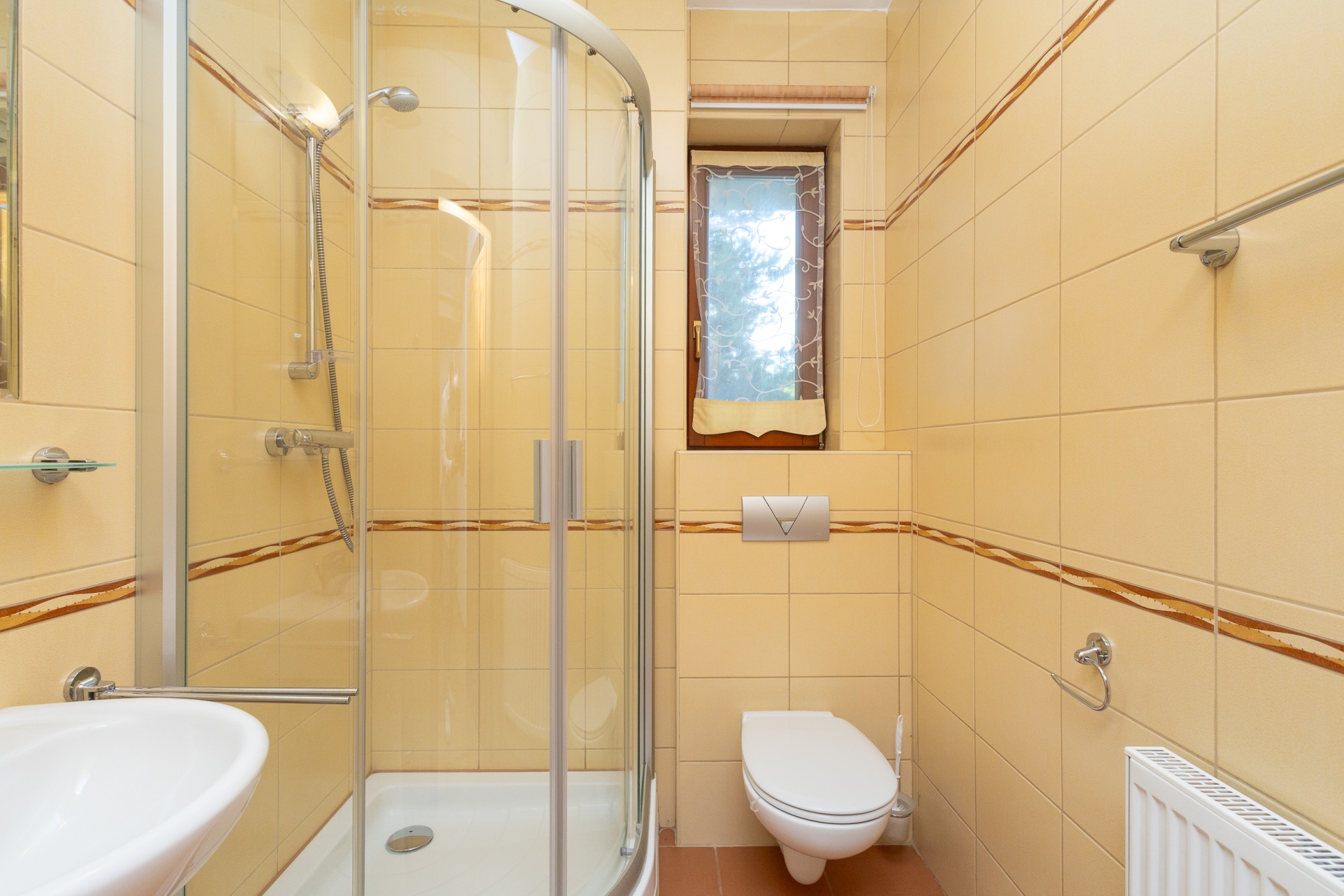 Łazienka na parterzeBukowinkaŁazienkiŁazienka na parterzeŁazienka na parterze - kabina prysznicowa, zlew, toaleta